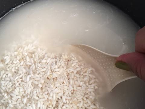- Masak ketan di magicom, kaya masak nasi ajah airnya seruas jari telunjuk