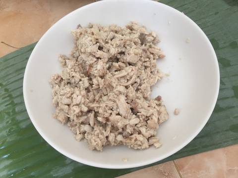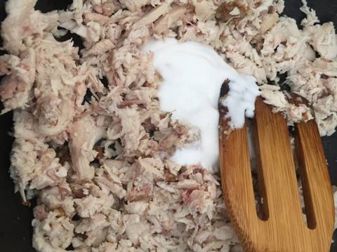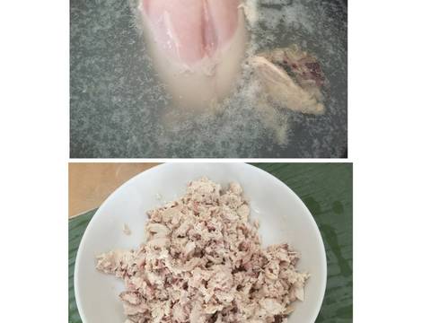 - Dada ayam rebus.., kalau sudah matang di suir lalu sisihkan